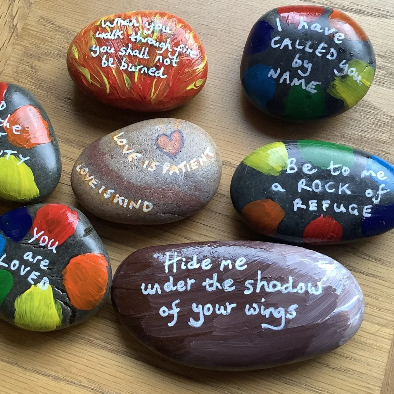 Many members of the church’s various communities painted affirming messages on pebbles to decorate the church, which the community have placed around the centre of Cambridge for people to find.