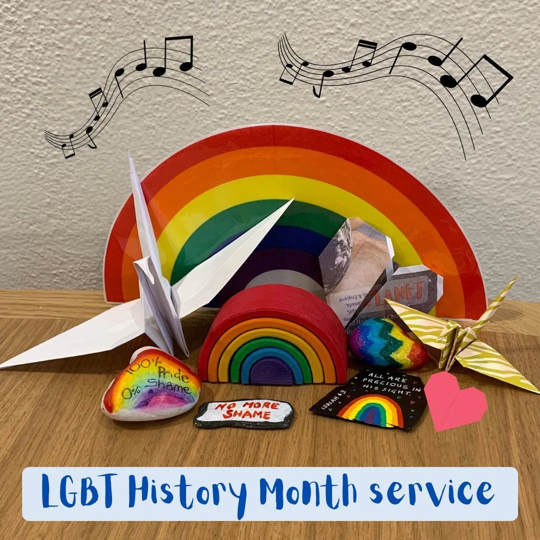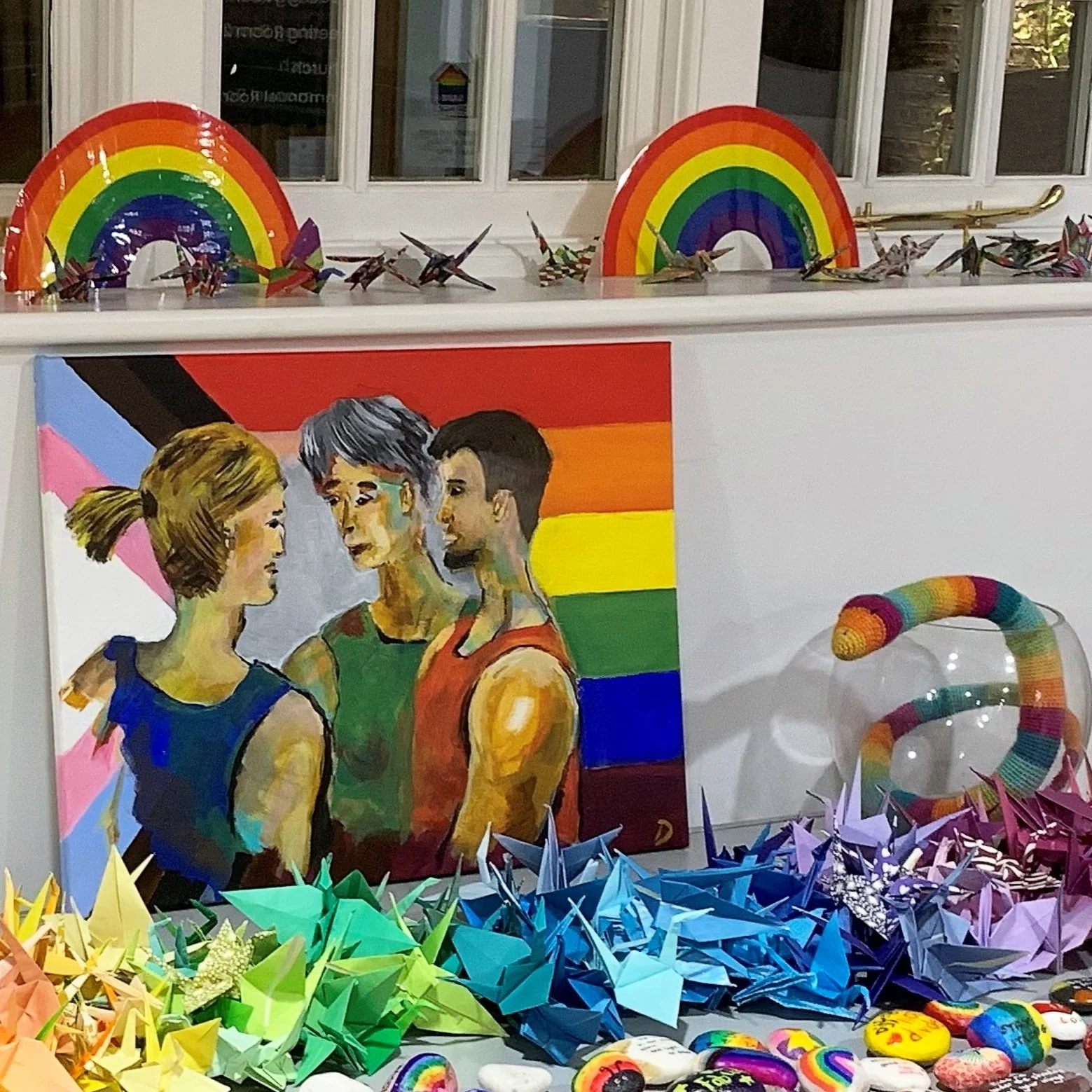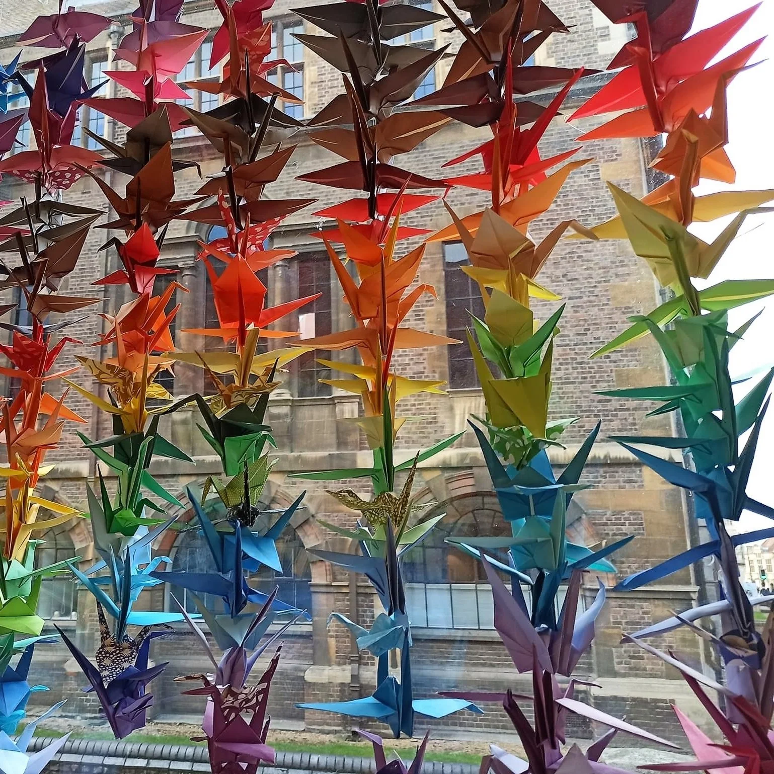 Lots of people have been involved in creating a stunning display of origami cranes in the colours of the Pride Progress flag, which are hanging in the church’s ‘Welcome’ area throughout February.
